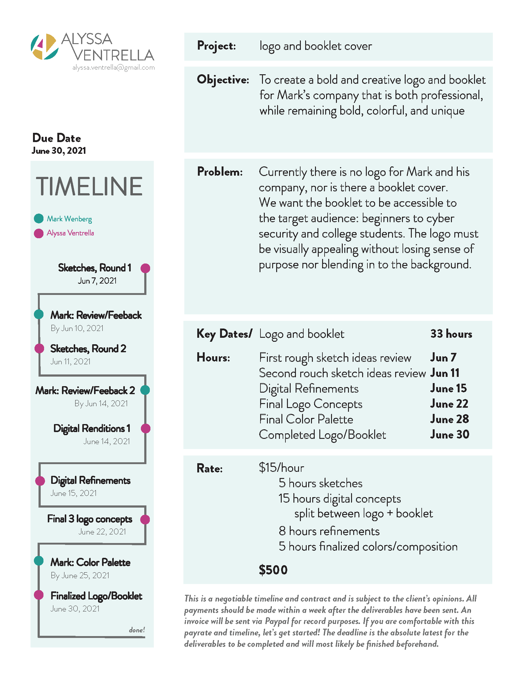 The other goal of a creative brief is to showcase how and why I charge the rates that I do. Something as simple as a branding project can take multiple revisions and several hours of refinements. For those who aren’t frequent visitors of the design realm, this helps them grasp the total ask and challenge of the project.